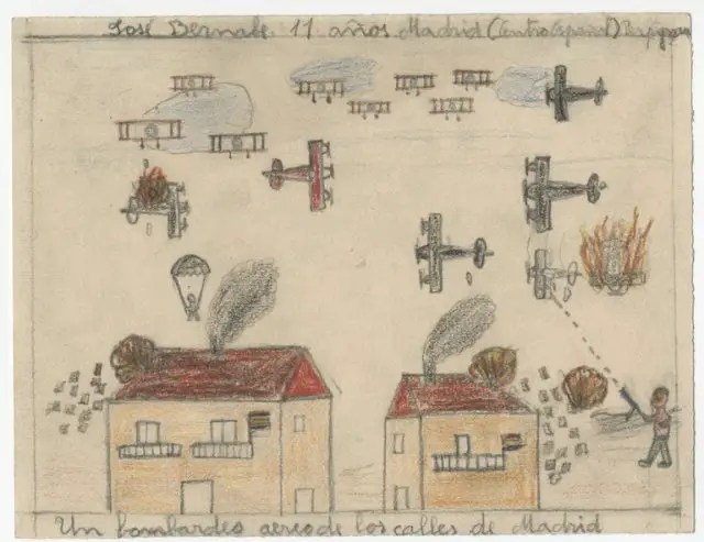 Residencia Infantil No 1, Onteniente. Juan José Martinez 15 añosAngeles Arnáíz, 14 años, Colonia Infantil de Bayona (Francia)«Un bombardeo aéreo de las calles de Madrid» José Bernabe, 11 años, Centro Español de Perpignan (Francia)