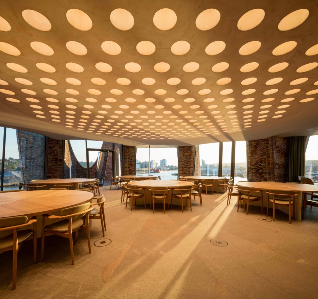 O Fjordenhus , levantado en el fiordo de Vejle, en Dinamarca, y que sirve de sede de operaciones al holding KirkKapital (Fun fact: liderado por los descendientes del fundador de LEGO). Solo el piso inferior está abierto al público.