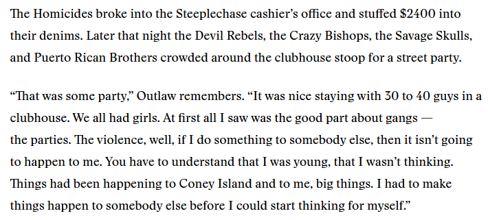 Fans de The Warriors (¿habrá alguien que no lo sea?), ésto podría interesaros. El Village Voice ha rescatado Coney Island Outlaws: Life Under the Boardwalk, un reportaje publicado en febrero de 1977 por Michael Daly con fotos de James Hamilton, sobre las bandas de Coney Island — el hogar de los protagonistas de la novela original de Sol Yurick y de la extraordinaria adaptación de Walter Hill –.