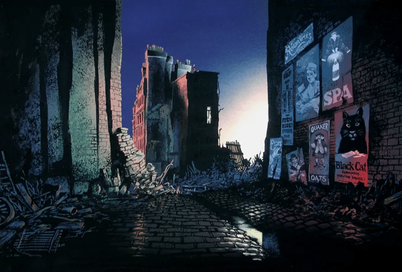 Un montón de concept art sobre la adaptación de Cats que Steven Spielberg intentó producir allá por principios de los 90, ambientada durante el bombardeo sobre Londres durante la Segunda Guerra Mundial.