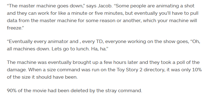 · Una anécdota clásica: cómo Pixar borró por accidente Toy Story 2.