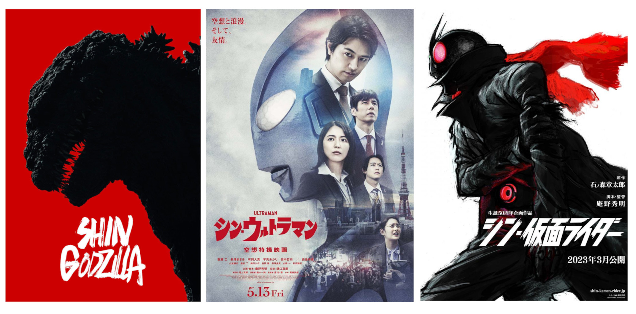 Shin Godzilla, Shin Ultraman y Shin Masked Rider son, por encima de todo, un ejercicio de convicción en tiempos donde esta palabra se vende muy barata. Tres actualizaciones de clásicos del cine y de la TV japonesa, insertados plenamente en la realidad del Japón contemporáneo al tiempo que mantienen la estética de los originales. Lo que parece una limitación al principio acaba siendo un clínic de cómo conseguir que películas de entre 15 y 20 millones de euros parezca que hayan costado tres veces más. Frente a esta avalancha de abusos de la que tendrá conocimiento cualquiera que se haya pasado cinco minutos por Twitter Cine, reconforta algo, no mucho, pero reconforta saber que todavía directores que instruyen a sus artistas de 3D para que se dediquen a trabajar en lo que importa, convencerte, en lugar de romperles el lomo a latigazos para que llenen el plano de mierda hasta rebosar.